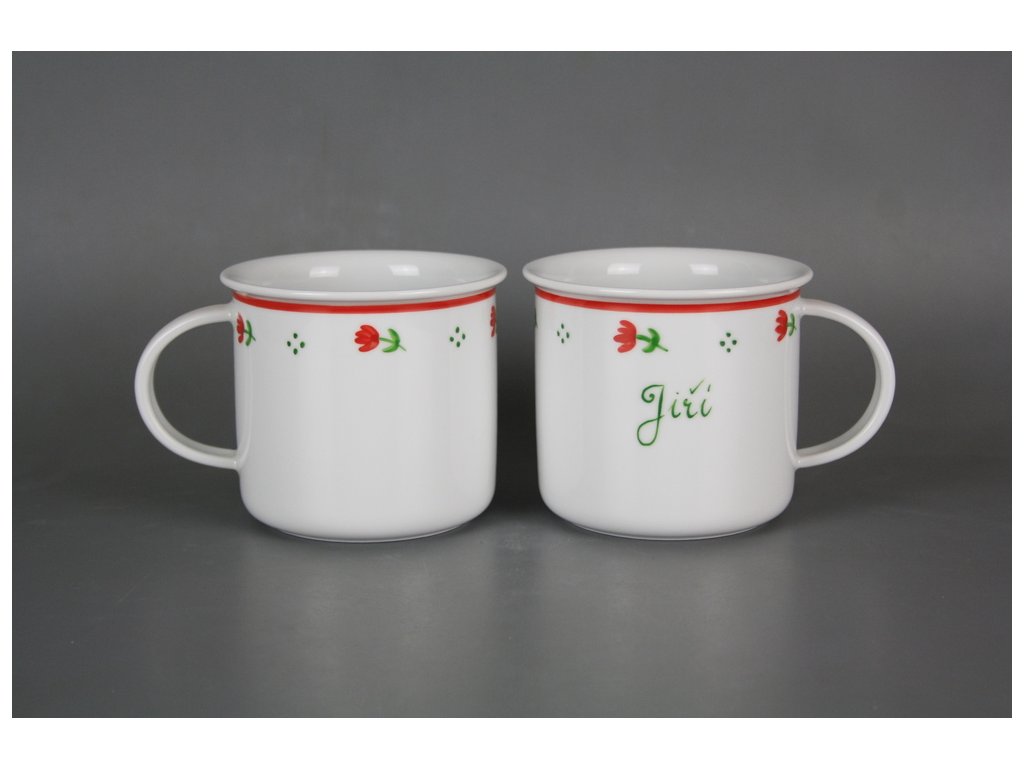 Ručně malovaný hrnek 0,38l s ručně psaným jménem z kvalitního českého porcelánu. Vhodný do myčky i mikrovlnné trouby.