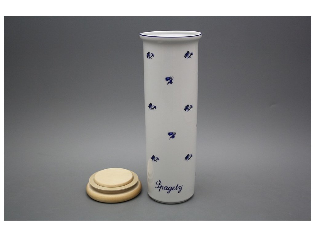 Praktická vysoká dóza na špagety s dřevěným víčkem z kvalitního českého porcelánu. Vhodná do myčky.