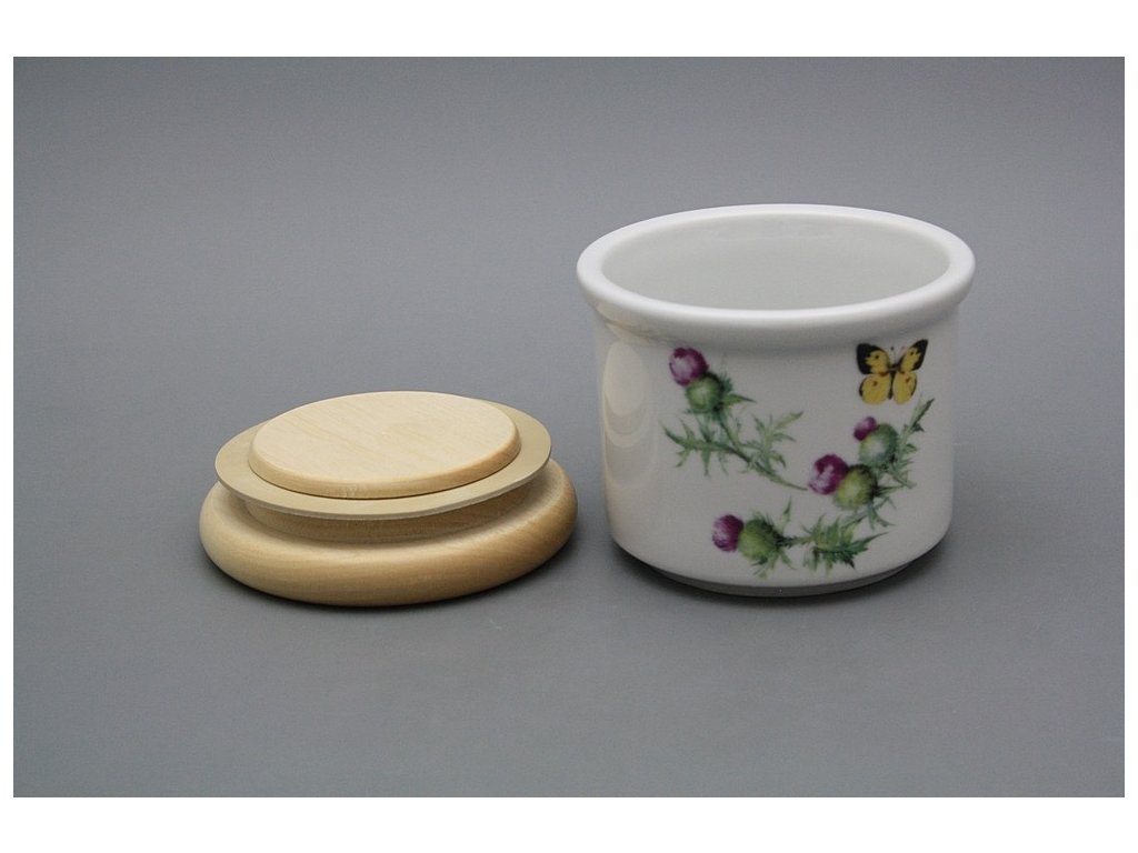 Praktická malá dóza s dřevěným uzávěrem z kvalitního českého porcelánu. Vhodná do myčky.