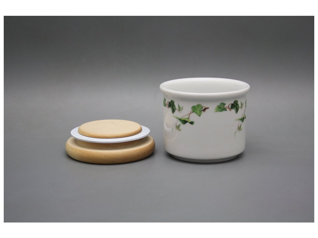 Praktická malá dóza s dřevěným uzávěrem z kvalitního českého porcelánu. Vhodná do myčky.