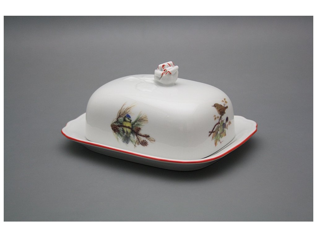 Praktická malá 2dílná hranatá máslenka z kvalitního českého porcelánu. Vhodná do myčky i mikrovlnné trouby.