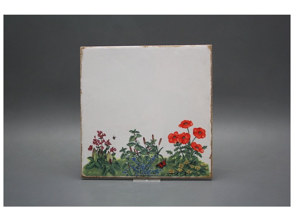Kvalitní dekorovaný keramický obklad 20x20cm (Retro, Vintage styl) v I. jakostní třídě, páleno v komorové peci na teplotu 820 st. Celsia - nesmazatelný omyvatelný dekor. K dekoraci byl použit keramický obklad FORLI BLANCO, povrch lesklý, bílý, postaršený.