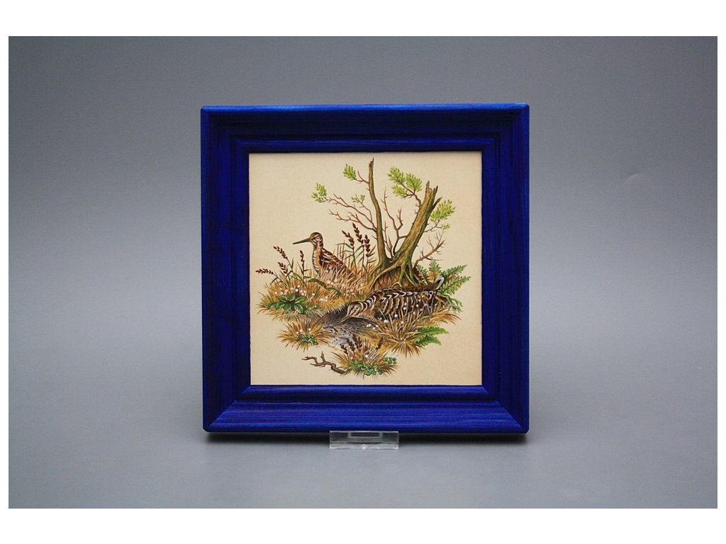 Závěsný keramický obrázek s dřevěným rámečkem, vypalovací teplota motivu 820 st.C., nesmazatelný omyvatelný dekor.