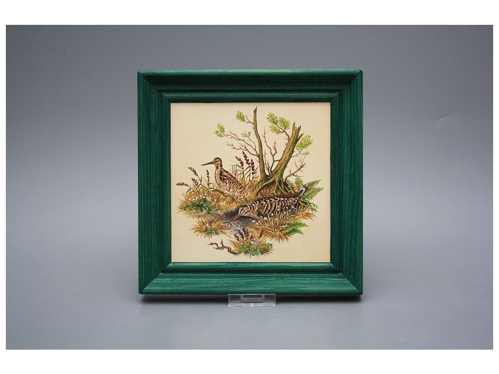 Závěsný keramický obrázek s dřevěným rámečkem, vypalovací teplota motivu 820 st.C., nesmazatelný omyvatelný dekor.