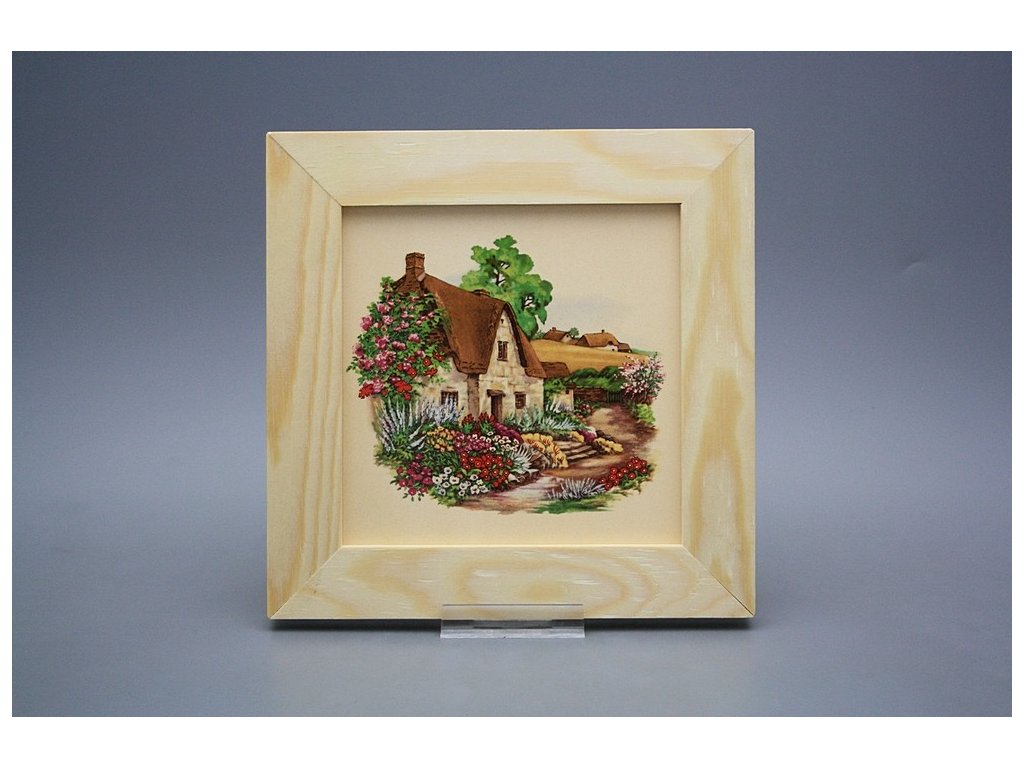 Závěsný keramický obrázek s dřevěným rámečkem, vypalovací teplota motivu 820 st.C., nesmazatelný omyvatelný dekor.
