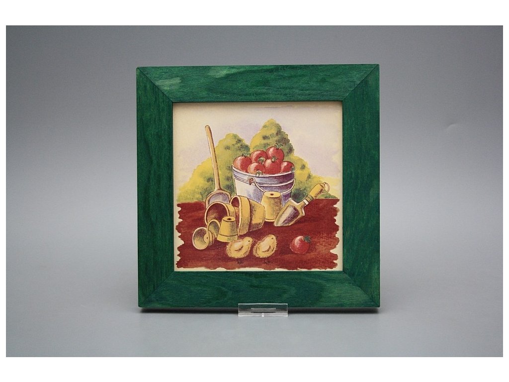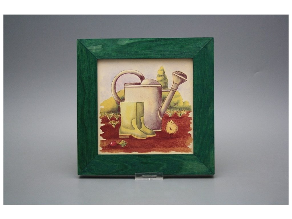 Závěsný keramický obrázek s dřevěným rámečkem, vypalovací teplota motivu 820 st.C., nesmazatelný omyvatelný dekor.