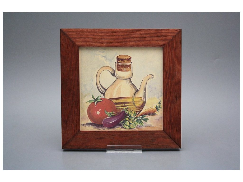 Závěsný keramický obrázek s dřevěným rámečkem, vypalovací teplota motivu 820 st.C., nesmazatelný omyvatelný dekor.
