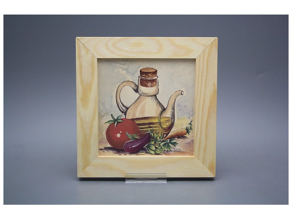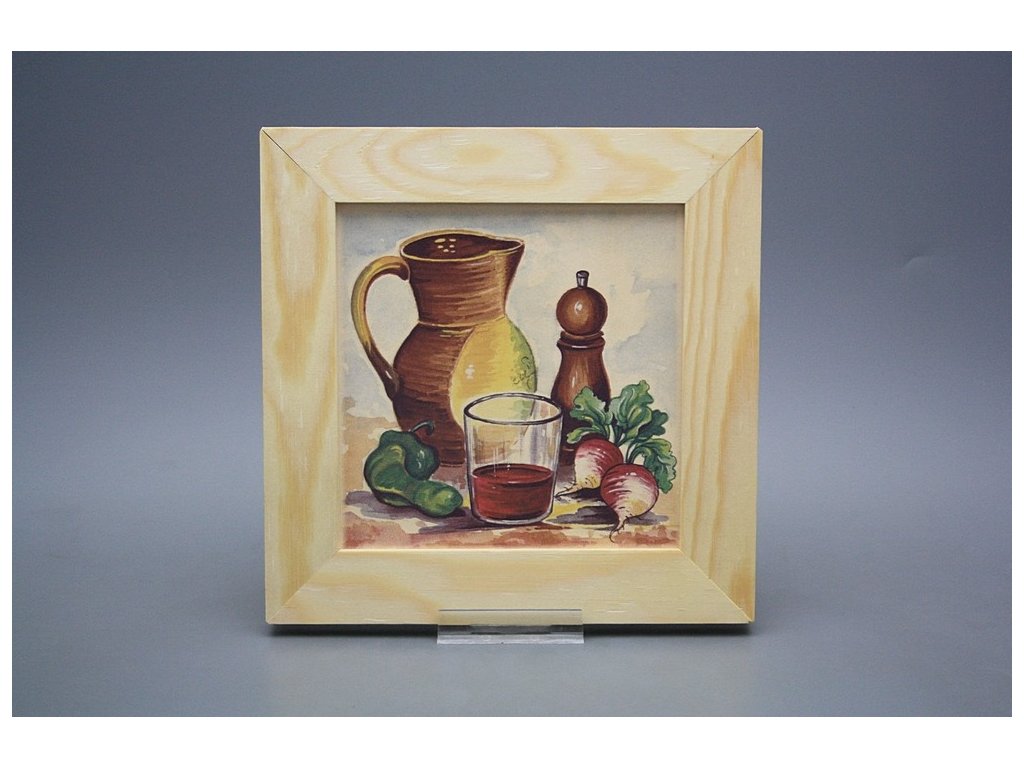 Závěsný keramický obrázek s dřevěným rámečkem, vypalovací teplota motivu 820 st.C., nesmazatelný omyvatelný dekor.