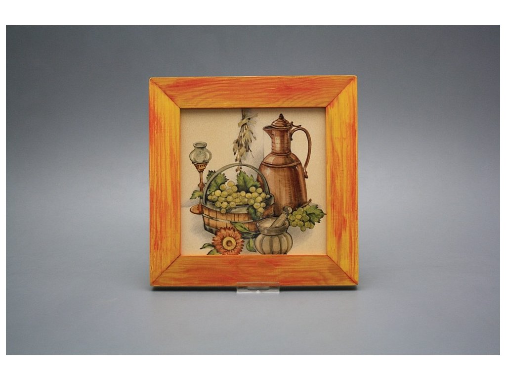 Závěsný keramický obrázek s dřevěným rámečkem, vypalovací teplota motivu 820 st.C., nesmazatelný omyvatelný dekor.