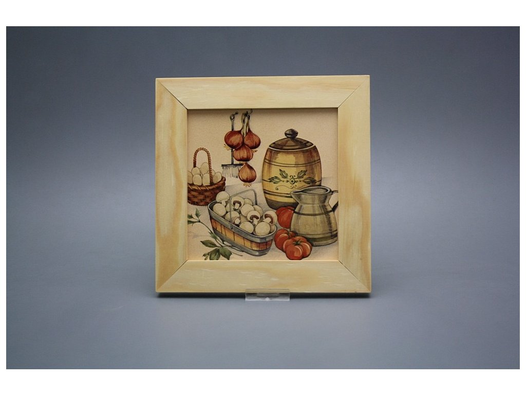 Závěsný keramický obrázek s dřevěným rámečkem, vypalovací teplota motivu 820 st.C., nesmazatelný omyvatelný dekor.