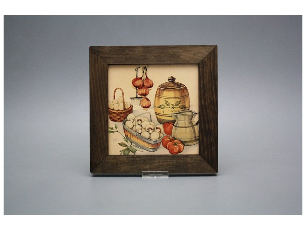 Závěsný keramický obrázek s dřevěným rámečkem, vypalovací teplota motivu 820 st.C., nesmazatelný omyvatelný dekor.