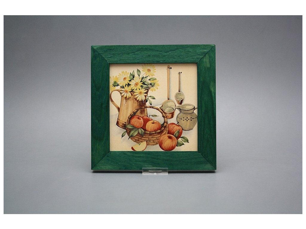 Závěsný keramický obrázek s dřevěným rámečkem, vypalovací teplota motivu 820 st.C., nesmazatelný omyvatelný dekor.