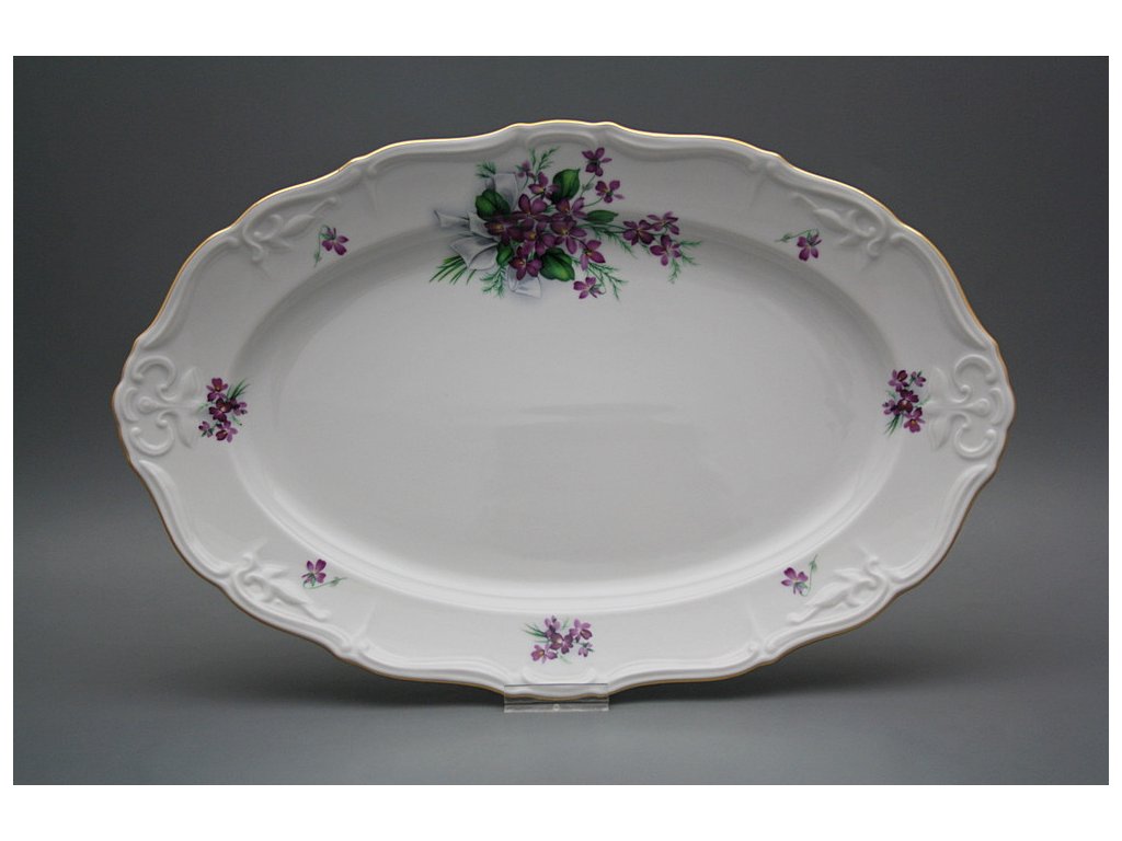 Luxusní ovál 36cm z kvalitního českého porcelánu, decentní jemný dekor v kombinaci s bohatým reliéfem, dekorace lesklým zlatem. NEVHODNÝ do myčky i mikrovlnné trouby.