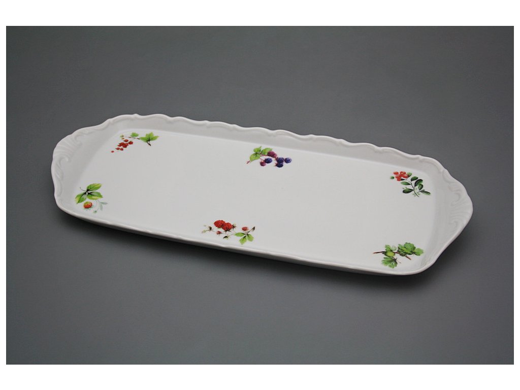 Praktický obdélníkový podnos 37cm z kvalitního českého porcelánu. Vhodný do myčky i mikrovlnné trouby.