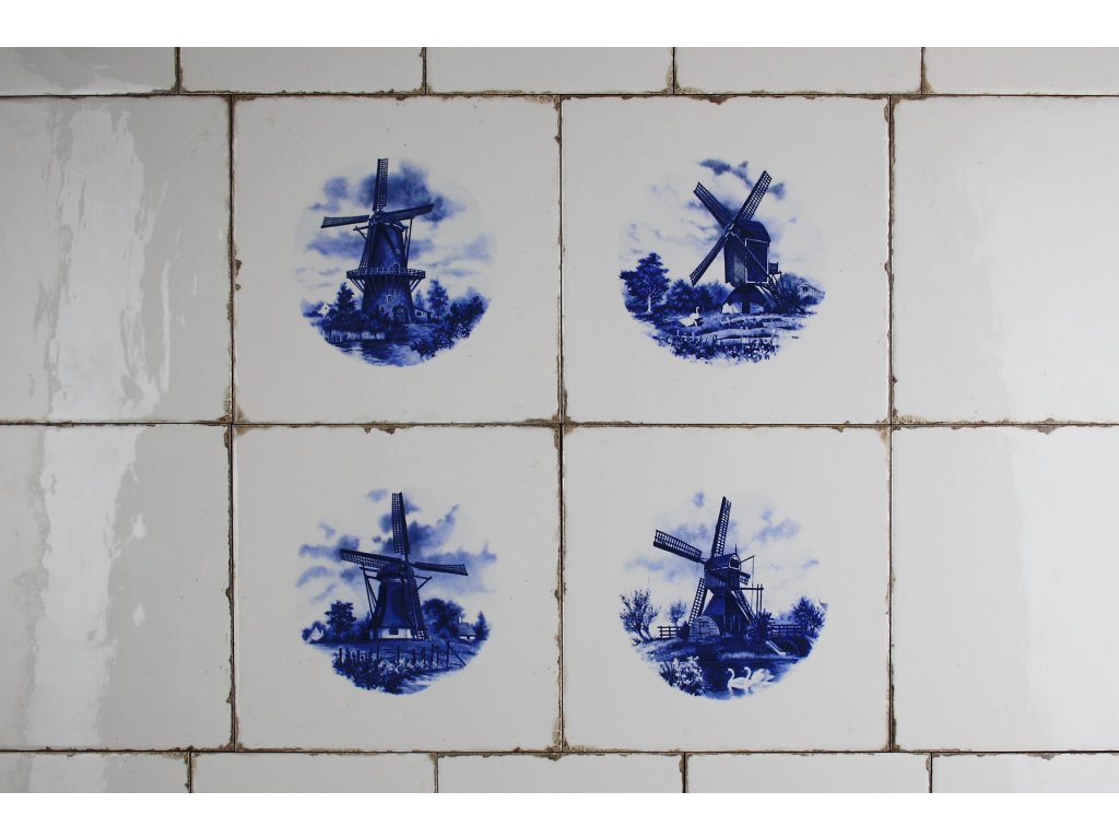 4dílná sada obkladů 20x20cm (Retro, Vintage styl) v I. jakostní třídě, páleno v komorové peci na teplotu 820 st. Celsia - nesmazatelný omyvatelný dekor. K dekoraci byl použit keramický obklad FORLI BLANCO, povrch lesklý, bílý, postaršený.