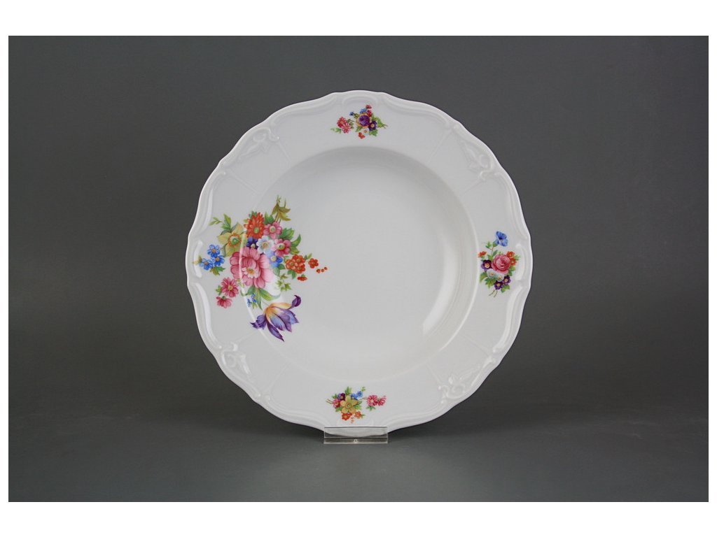 Luxusní hluboký talíř 23cm z kvalitního českého porcelánu, decentní jemný dekor v kombinaci s bohatým reliéfem. VHODNÝ do myčky i mikrovlnné trouby.