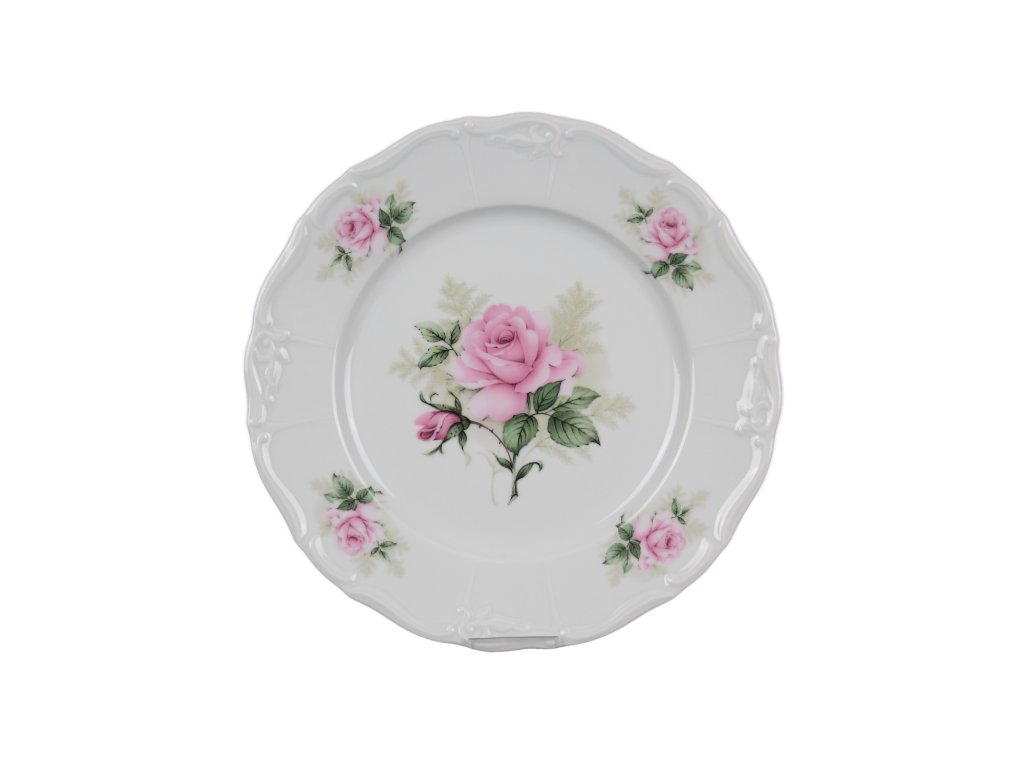 Luxusní mělký talíř 25cm z kvalitního českého porcelánu, decentní jemný dekor v kombinaci s bohatým reliéfem. VHODNÝ do myčky i mikrovlnné trouby.