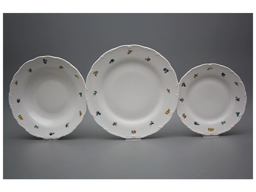 Praktická 12dílná talířová souprava z kvalitního českého porcelánu. Vhodná do myčky i mikrovlnné trouby.