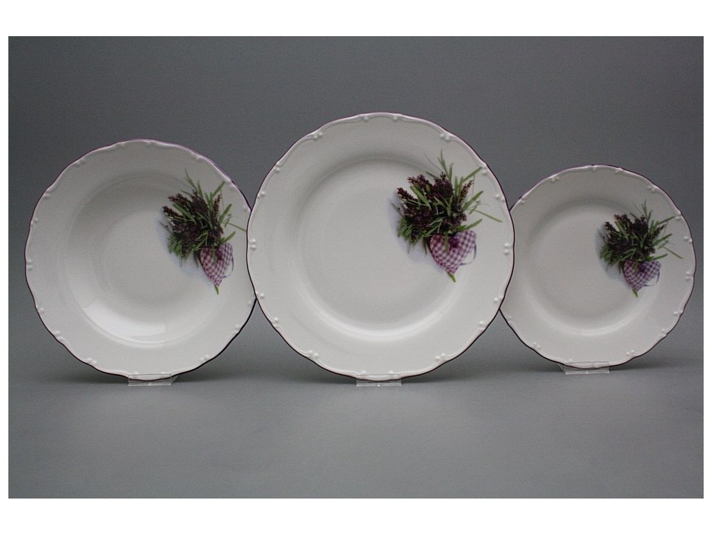Praktická 18dílná talířová souprava z kvalitního českého porcelánu. Vhodná do myčky i mikrovlnné trouby.