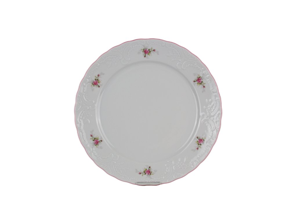 Luxusní praktická 36dílná talířová souprava z kvalitního českého porcelánu, růžový okraj (RL). VHODNÁ do myčky i mikrovlnné trouby.