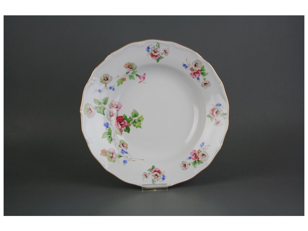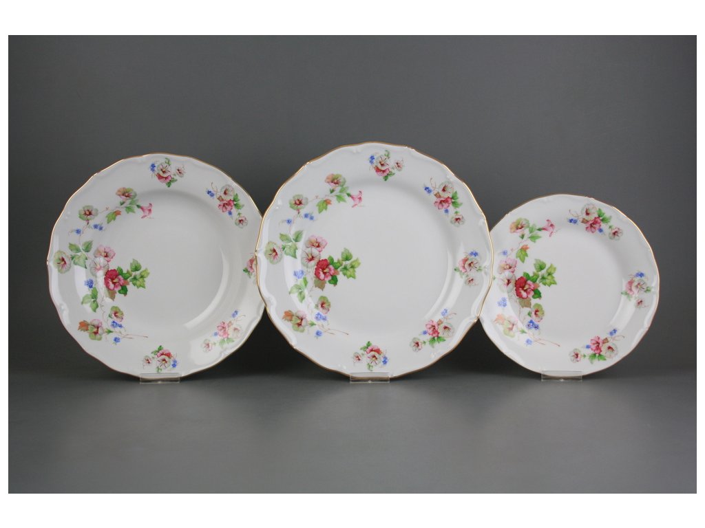 18dílná talířová souprava z kvalitního českého porcelánu, dekorace lesklým zlatem (GL). Nevhodná do myčky i mikrovlnné trouby.