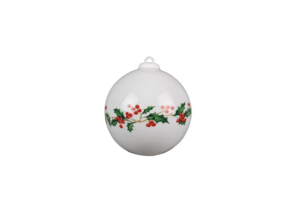 Vánoční porcelánová koule o průměru 7cm z kvalitního porcelánu, čistá váha koule bez obalového materiálu je 55g. Koule je opatřena plastovou úchytkou s očkem pro snadné uvázání.