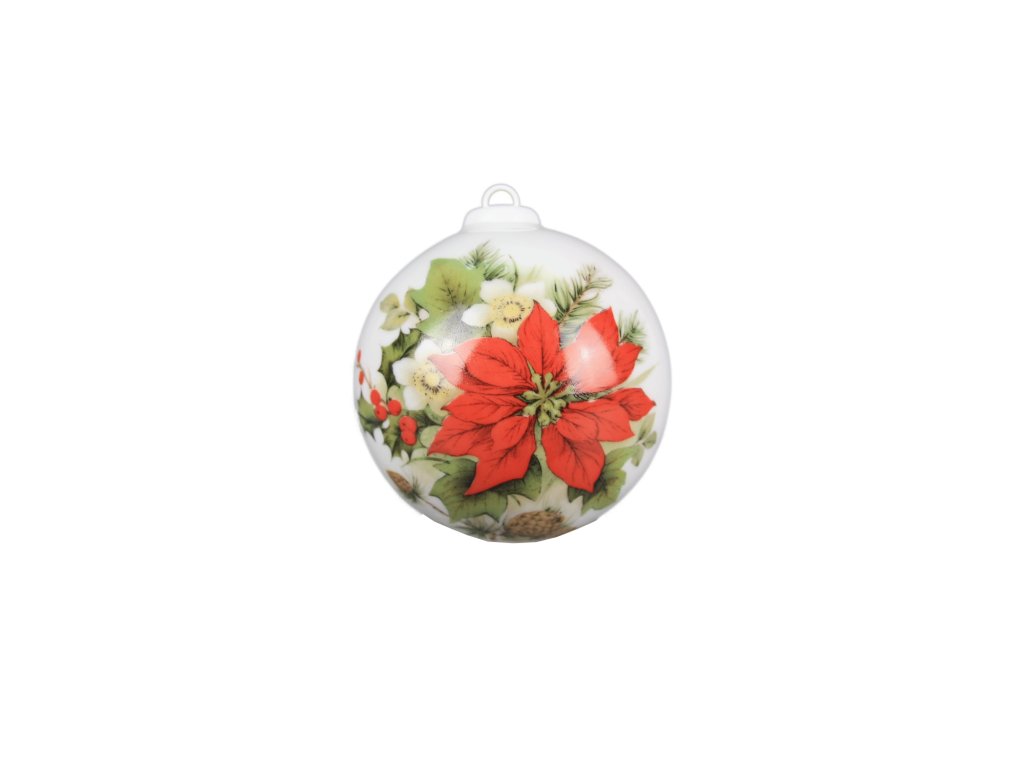 Vánoční porcelánová koule o průměru 7cm z kvalitního porcelánu, čistá váha koule bez obalového materiálu je 55g. Koule je opatřena plastovou úchytkou s očkem pro snadné uvázání.